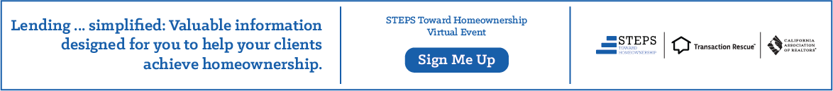 .The CALIFORNIA ASSOCIATION OF REALTORS® STEPS Toward Homeownership addresses housing affordability from the perspective of financial literacy. Did you know over half of all renters in California thought you needed at least 20% down to purchase a home? The reality is there are programs available that enable a purchase with much lower down payments.  This program brings relevant information to our members about credit scores, financial planning, leveraging down payment resources and options for low to moderate income earners so that we can educate our buyers. The CALIFORNIA ASSOCIATION OF REALTORS® supports RESPONSIBLE Homeownership.